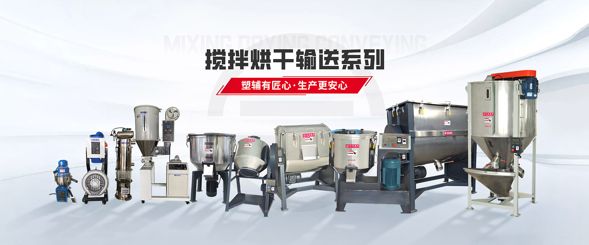 塑料干燥機與混合干燥機在功能、結構及應用場景上差異顯著。塑料干燥機以單一干燥為核心,專注于去除塑料物料中的水分,像熱風干燥機通過熱風循環穿透 PP、PE 等粒料帶走水分,除濕干燥機則借助分子篩等系統處理 PA、PC 等吸濕性強的工程塑料,確保物料干燥度滿足注塑、擠出等加工要求,但其過程中物料基本不混合?;旌细稍餀C則集混合與干燥于一體,在均勻攪拌多種物料的同時完成脫水。例如螺帶式混合干燥機通過 U 型槽內的螺帶推動物料上下翻動,夾套加熱配合抽風排濕,適合色母粒與主料、碳酸鈣等助劑的同步處理;犁刀式機型則以高速攪拌破碎結塊物料,混合均勻度可達 95% 以上,特別適用于改性塑料配方調試等需要多組分均勻混合的場景。從結構看,塑料干燥機多為料斗搭配加熱、送風系統,物料靜止或簡單翻動,如真空干燥機通過負壓降低水分沸點,適合熱敏性塑料;混合干燥機則必須配備攪拌裝置,如雙錐回轉干燥機依靠筒體旋轉使物料翻滾,同時通過筒壁加熱和真空系統實現雙重功能,其攪拌強度直接影響混合與干燥效率。性能上,塑料干燥機干燥時間通常 1 - 4 小時,能耗集中在加熱與送風,溫度控制精度 ±5℃;混合干燥機因需兼顧攪拌,干燥時間略長至 2 - 6 小時,但綜合工序效率更高,能耗隨攪拌功率增加,溫度控制需考慮物料剪切熱,精度達 ±3℃。選型時,若干燥與混合分步進行、物料單一,選塑料干燥機;若需同步處理多組分物料(如再生料與助劑混合),或追求設備集成化,混合干燥機更合適。維護上,前者側重加熱元件與風機,后者需關注攪拌軸密封、槳葉磨損及軸承潤滑,確?;旌暇扰c設備壽命。